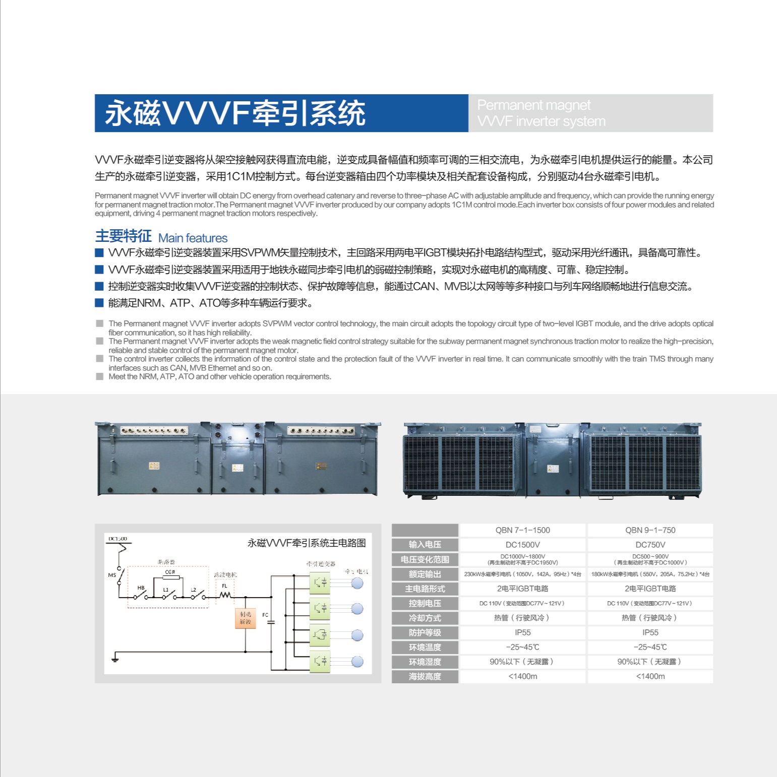 輸出容量(負載):永磁牽引電機4×180-300kW,